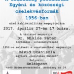 A hódmezővásárhelyi Emlékpontban megnyílt A szabadság pillanatai. Egyéni és közösségi cselekvésformák 1956-ban című tablókiállítás olyan, a hatvanegy évvel ezelőtti magyar forradalom és szabadságharc folyamán jelentkező ismert és kevésbé ismert egyéni és közösségi cselekvési formákat mutat be, amelyek célja a kommunista diktatúra megszüntetése és a demokratikus Magyarország megteremtése volt. A tárlatot a Bálint Sándor Szellemi Örökségéért Alapítvány az 1956-os forradalom és szabadságharc 60. évfordulójára létrehozott Emlékbizottság támogatásával valósította meg, kurátora pedig Miklós Péter, az Emlékpont intézményvezetőj6e volt. A megnyitón az ötvenhatos eseményeket munkástanácsi elnökként megélt, majd a megtorlás során bebörtönzött Dávid Szaniszla idézte fel emlékeit. A kiállítás május 20-ig látogatható az Emlékpontban.